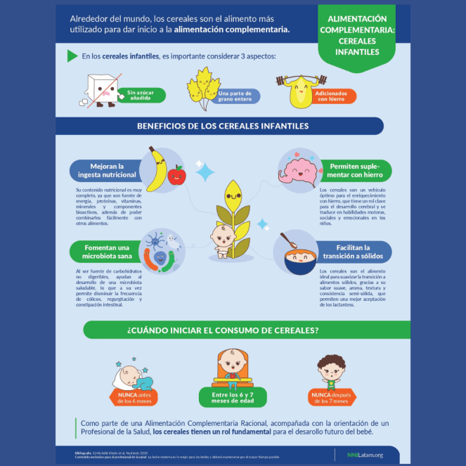 -Gutierrez P. (2021). Alimentación complementaria: Evidencia reciente sobre cereales infantiles. Disponible en: https://latam.nestlenutrition-institute.org/sites/default/files/documents-library/publications/secured/NNI_AC-Cereales_Presentacio%CC%81n_0_0.pdf