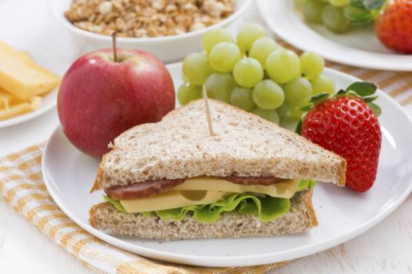 - sandwich (mejor si es de pan integral) de jamón o pavo y queso con lechuga y tomate + jugo 100% natural