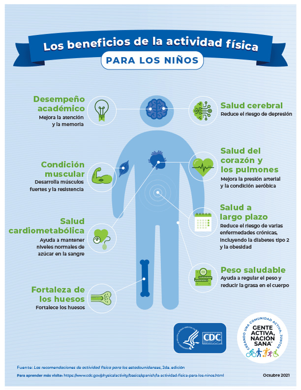 - Edad preescolar: de 3 a 4 años. La actividad física debe estar presente a lo largo de todo el día, así se incentiva el crecimiento y el desarrollo. Se recomienda pasar al menos 180 minutos en una variedad de actividades físicas de cualquier intensidad, de los cuales al menos 60 minutos son de actividad física de intensidad moderada a vigorosa, repartida a lo largo del día; más es mejor.