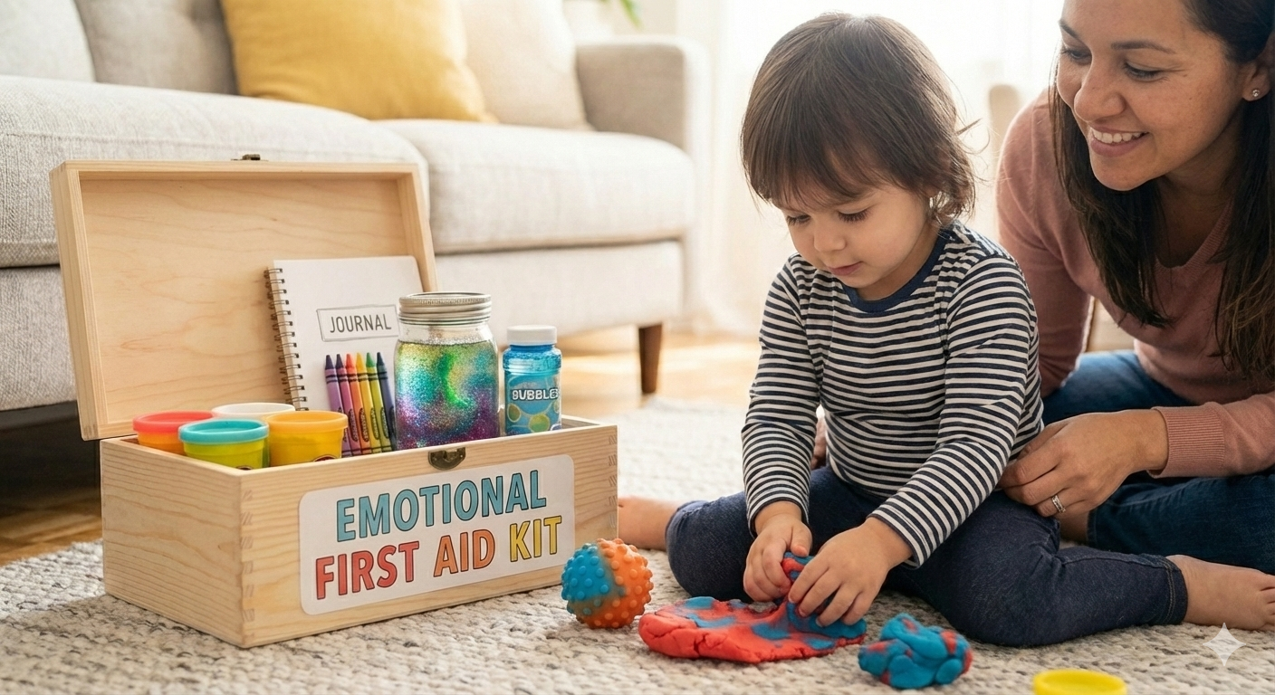 No es una caja de juguetes ni un premio. Es un set de herramientas sensoriales diseñadas para ayudar al sistema nervioso del niño a pasar del estado de alerta/lucha (cerebro emocional) al estado de calma (cerebro racional).
